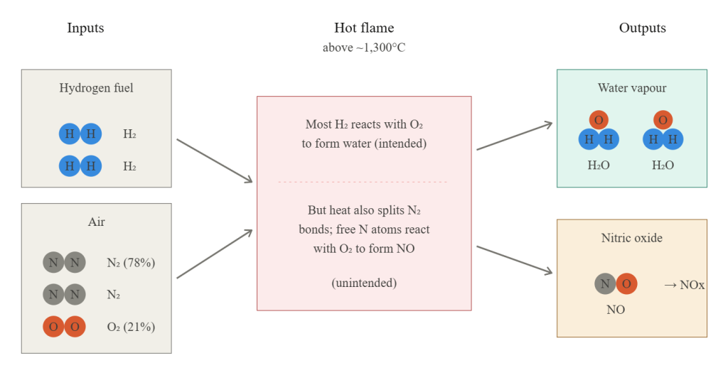 Why hydrogen releases more NOx than methane